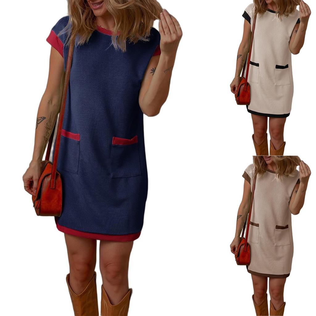 Women's Casual Fashion Dresses Solid Color Short Sleeve Dresses