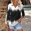 Women's Fashion Casual Button Three-quarter Sleeve Striped Print Lapel Shirt Top