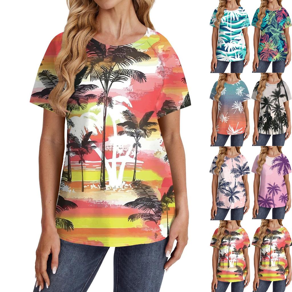 Women's Short Sleeve T Shirts Round Neck Cute Tunic Tops Basic Tees Blouses Loose Fit Pullover