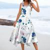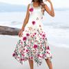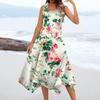 Women's Casual Fashion Round Neck Sleeveless Floral Print Irregular Hem Midi Dress
