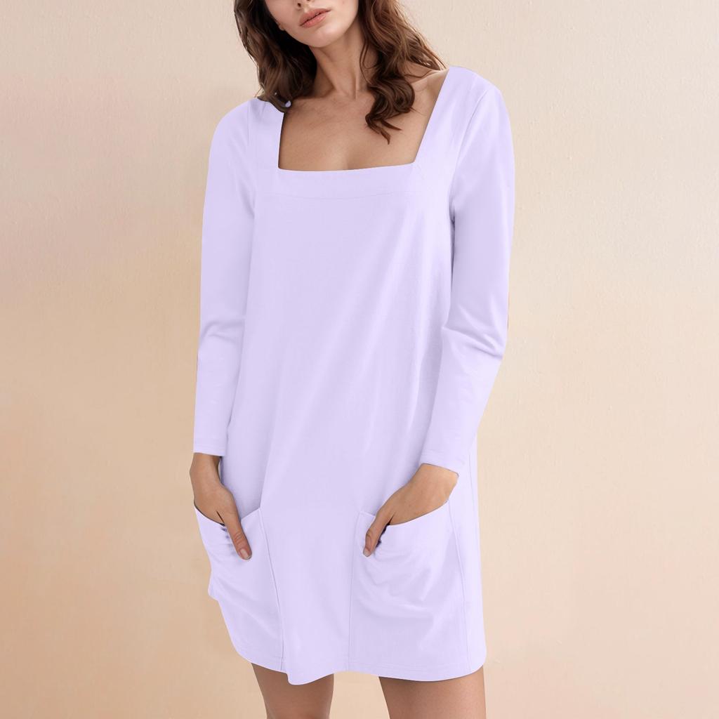 Women's Fashion Casual Solid Color Square Neck Long Sleeve Short Dress