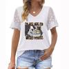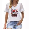 Plus Size Women's Summer V-Neck T-Shirt with Short Sleeves, Floral Print, and Lace Sleeves