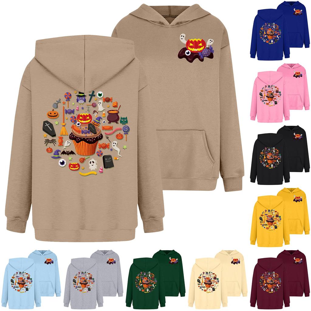 Women's Round Neck Long Sleeve Halloween Print Top Hooded Sweatshirt