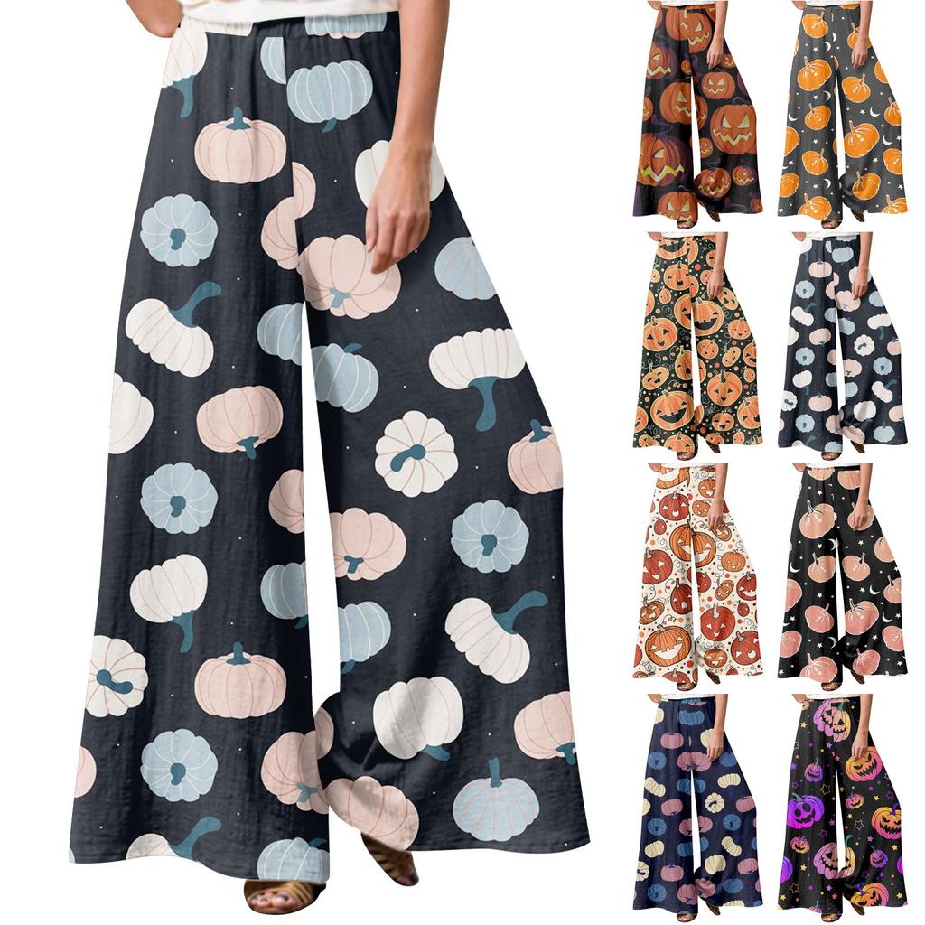 Women's Winter Sweatpants Halloween Printed Casual Pants Women's Fleece Sweatpants Wide Leg Straight Pants