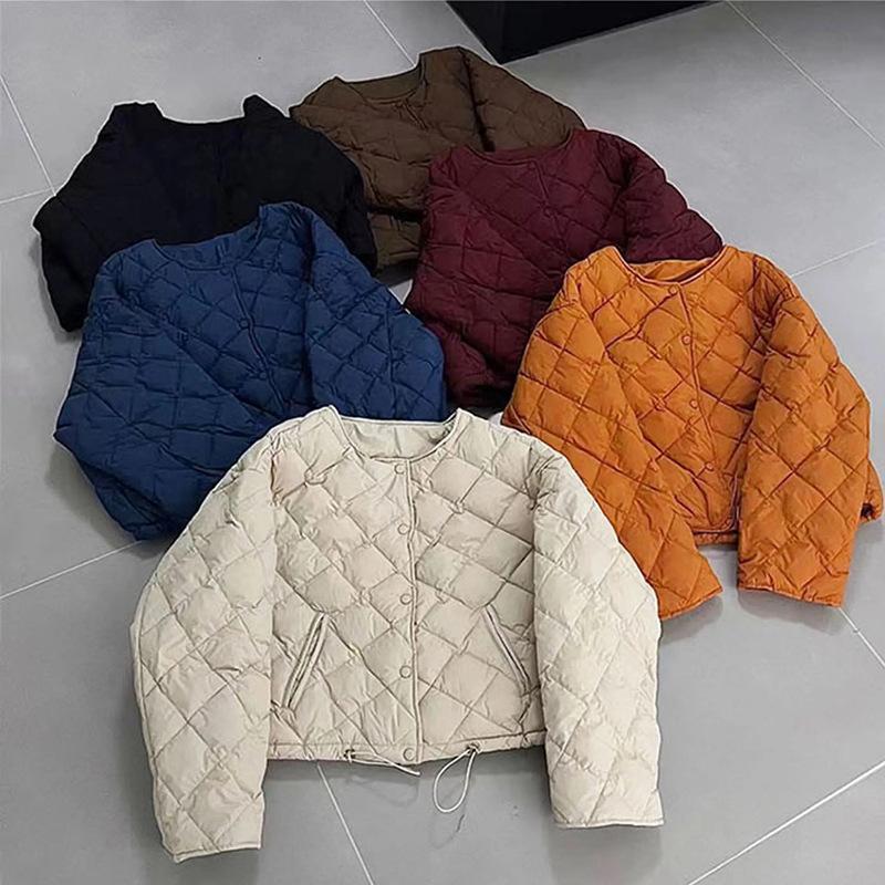 Rhombus Short Down Jacket Women's 2024 Winter New Fashion Round Neck Lightweight Small Foreign Style Warm Jacket Tide
