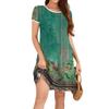 Women's Fashion Casual Floral Print Dress Round Neck Short Sleeves Miniskirt