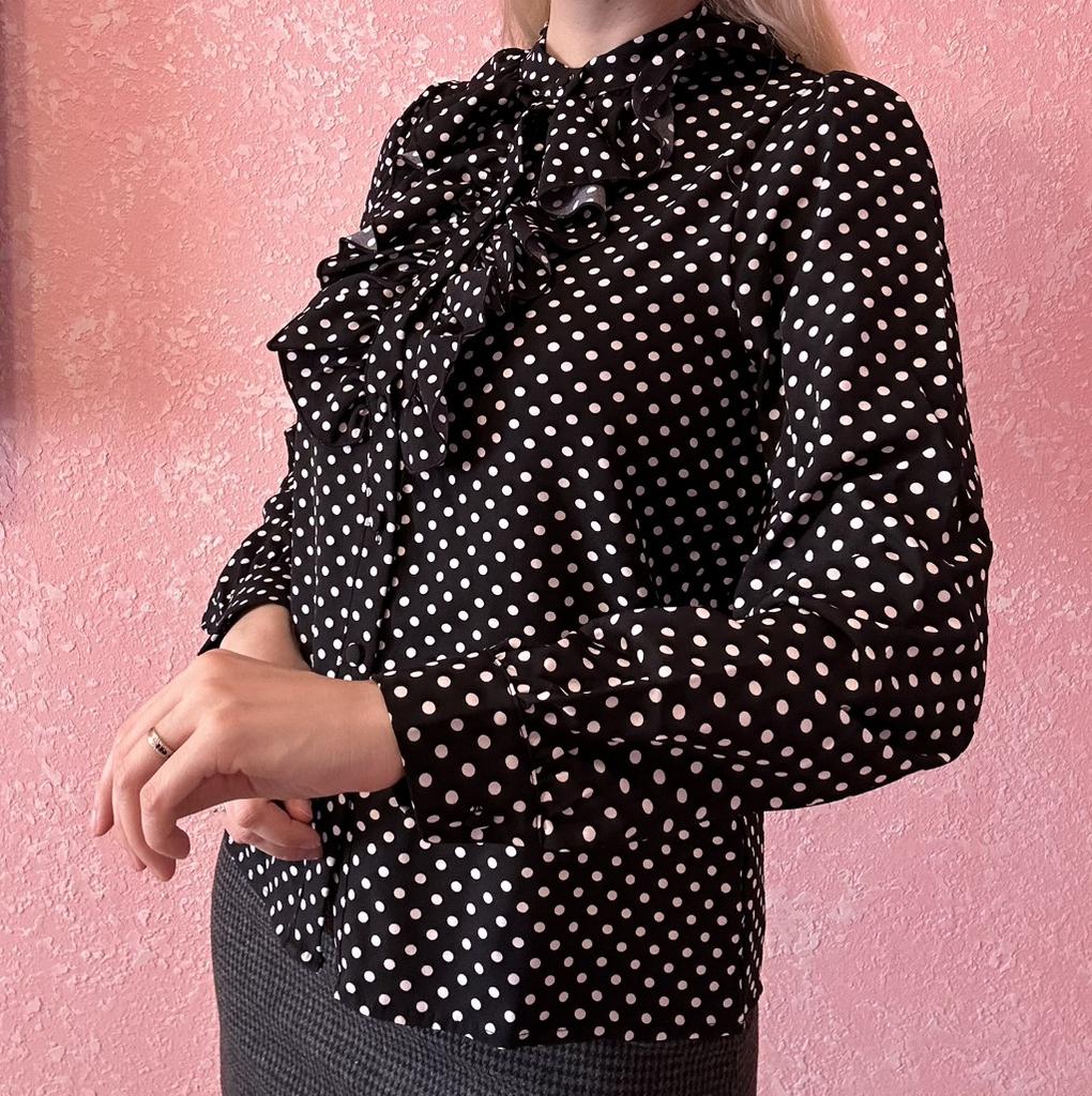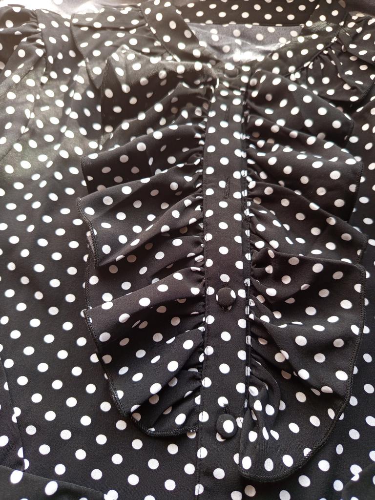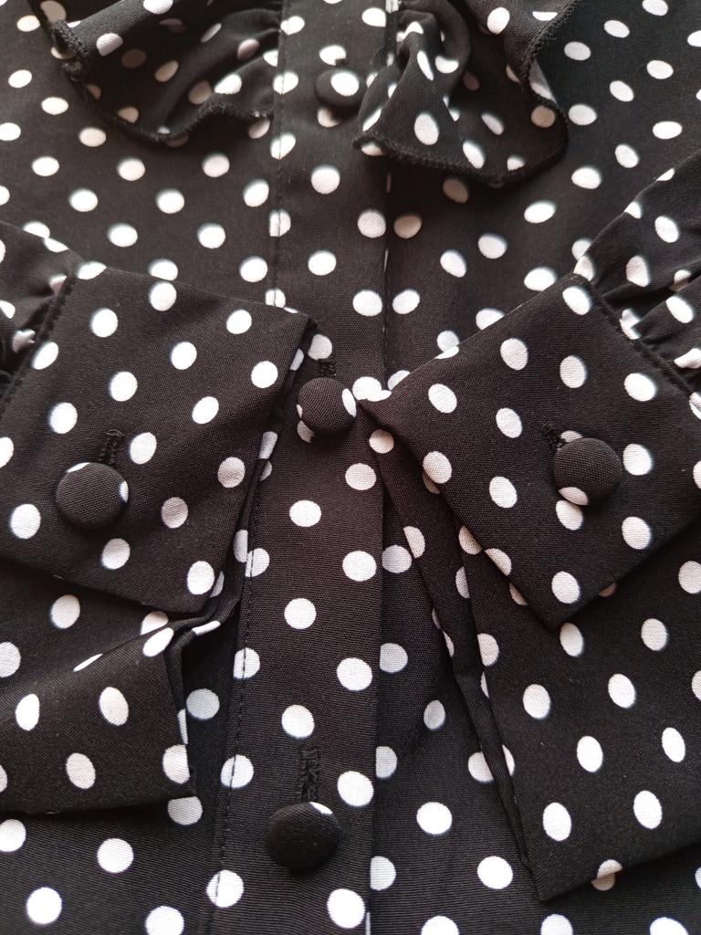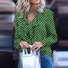 VONDA Women Fashion Ruffle Stand Collar Long Sleeve Polka Dot Shirts