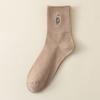Men's Embroidered Long Cotton Socks - Autumn/Winter Mid-Tube Solid Color Sports Socks with Japanese Sunglasses Design.