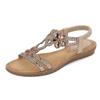 Large Size Rhinestone Sandals Round Head Flat Heel Hollowed Out Bohemian Comfortable Women's Shoes Summer