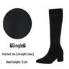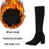 Step into elegance with these stylish Women's Knee-High Pointed Toe Boots, designed for the 2024 autumn and winter seasons. Featuring thick high heels, these boots bring both height and comfort to your wardrobe. Crafted for women, they come with a durable rubber sole ensuring reliable traction and support. The interior offers warmth and coziness with an artificial plush insole and plush lining, perfect for those chilly days. Available in small sizes, these boots cater to those seeking a refined and fashionable look while ensuring a snug fit.