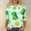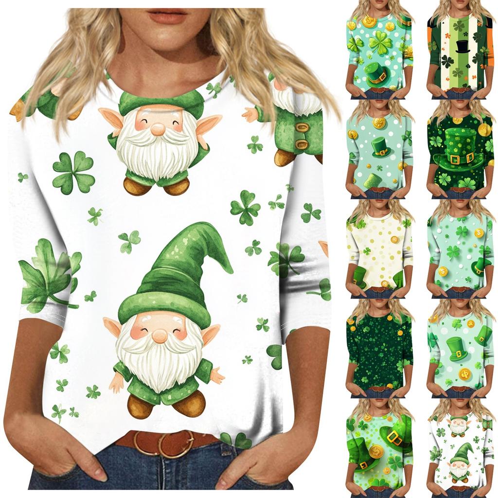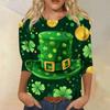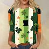 3/4 Sleeve Top Women's T-shirt Casual St. Patrick's Day Printed Top T-shirt Crew-neck Jumper