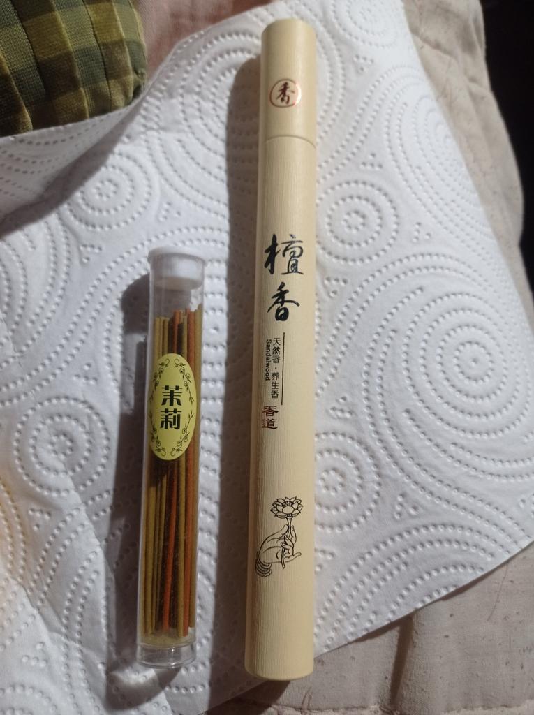 I usually buy different chopsticks, in a plastic tube with a stone into which they can be inserted. I wanted them in such a package, similar to the one we used to have for thermometers. It was packed in as many as three bags. Moreover, there was a hole in the general packaging from which they clearly wanted to remove this item. But everything arrived whole and not torn. These chopsticks are a millimeter thinner than the ones bought previously. But their size is 20 cm. They smell unobtrusively and burn quite quickly. They suit me completely.