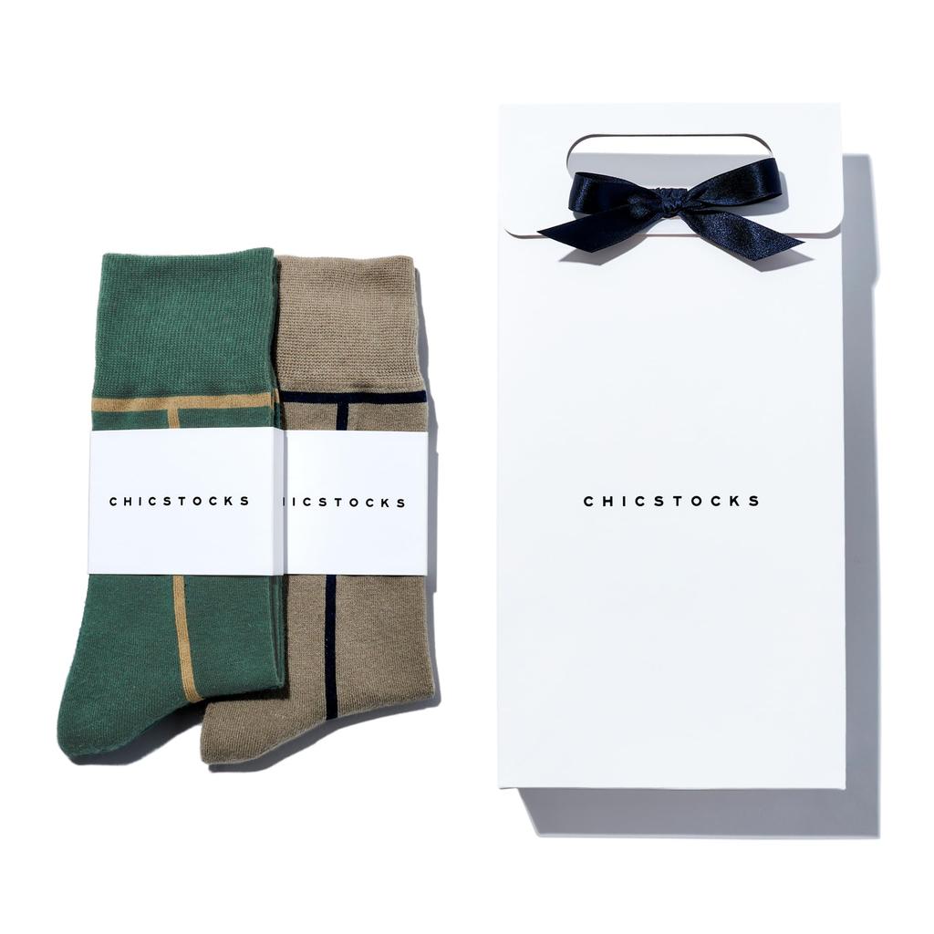 CHICSTOCKS Gift Pack Set with Tote Bag Socks Gift Made In Japan Socks CHICSTOCKS Taupe X Matsuba X S <Official> - 2-pair - Men's Women's (LINE