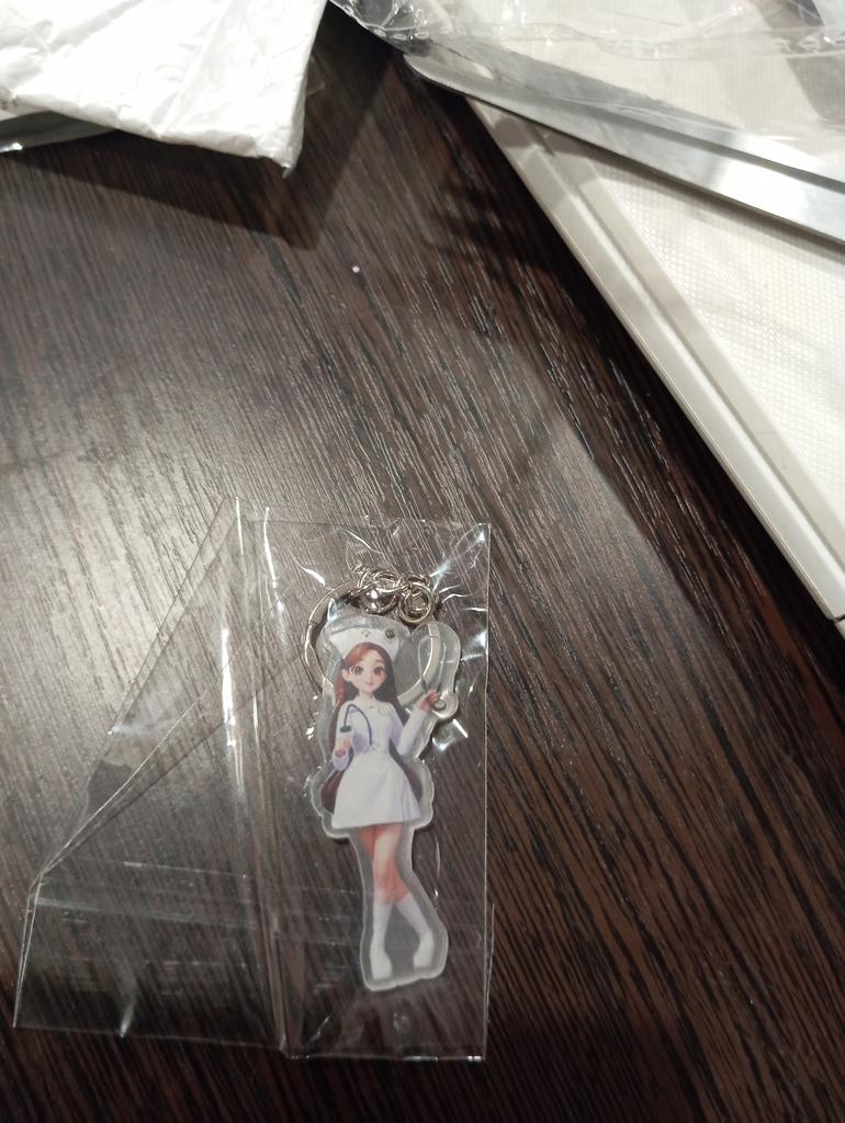 On a flat piece of transparent acrylic is a drawing of a girl. It looks very cheap. I wanted to make a small gift for an acquaintance, but I won't.