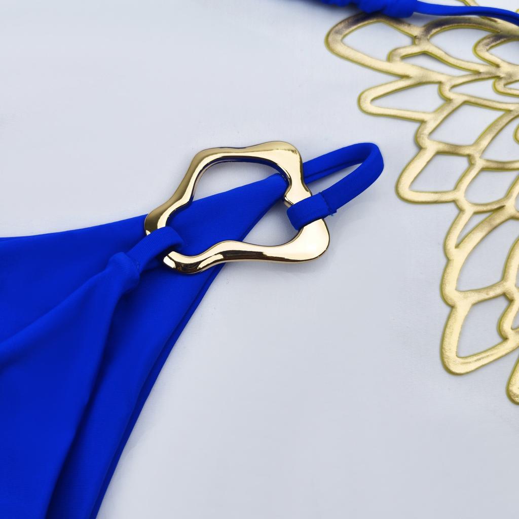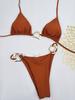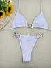 2025 Solid Color Bikini Women's Sexy Metal Buckle Briefs Split Swimsuit Fashion Bikini