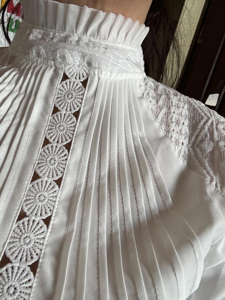 Shirt Spring and Summer High-end Sense of White Puff Sleeve Stand-up Collar Blouse Women