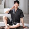 Men Pajamas Sleepwear Summer Cotton Nightclothes Short Sleeved Shirt and Shorts Solid Color Casual Homewear V Neck Kimono