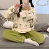 Winter Thickened Warm Flannel Women Pajamas Loungewear Long-Sleeved Two-Piece Cartoon Bear Coral Velvet Girl Sleepwear Homewear