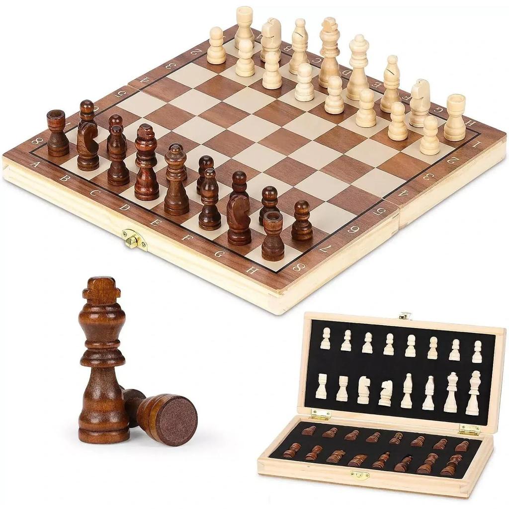 ATEK Wooden Magnetic Handmade Chess Set, Foldable Travel Board Game, Fun Chess