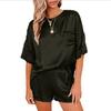 Women's Clothing Solid Color Imitation Silk Pajamas Short-Sleeved Shorts Irregular Two-Piece Suit Solid Color Homewear Set