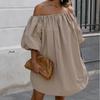 Elegant Khaki Off-Shoulder Puff Sleeve Dress - 2024 Spring/Summer Fashion Short Skirt