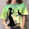 2025 T-Shirt For Women Kawaii Cat Print Tops Summer Oversized Tshirts Womens Clothes O-Neck Tees Female Clothing Fashion Blouse