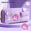 Kaba Bear Cartoon Multi-Layer Flip Cover Pencil Case for Girls - Large Capacity, Cute Design for Primary Students.