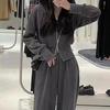 "Women's Retro Hong Kong-Style Hooded Tracksuit: Loose-Fit Sweater and Slim Pants for Spring & Autumn"
