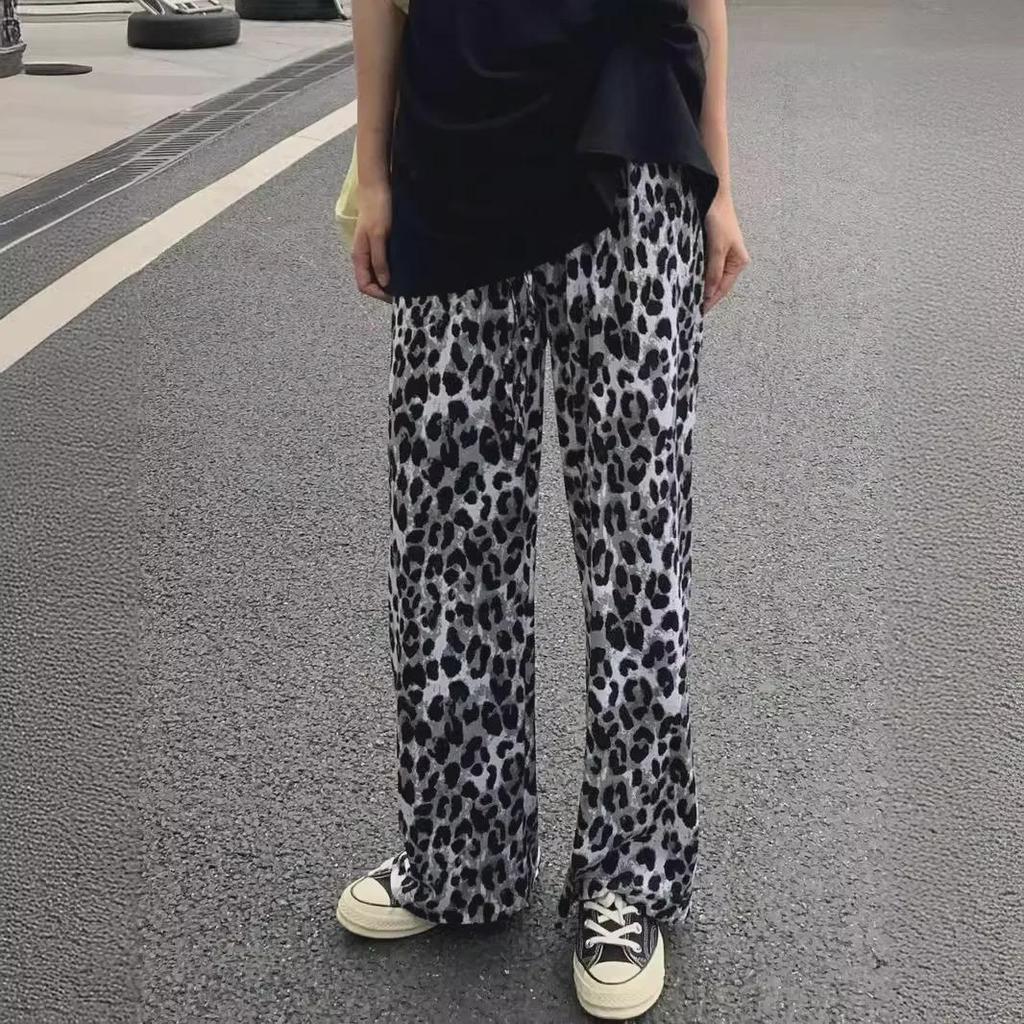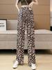 2024 Women's Ice Silk Leopard Print Wide-Leg Pants, High Waist, Drawstring, Draped Cool Style