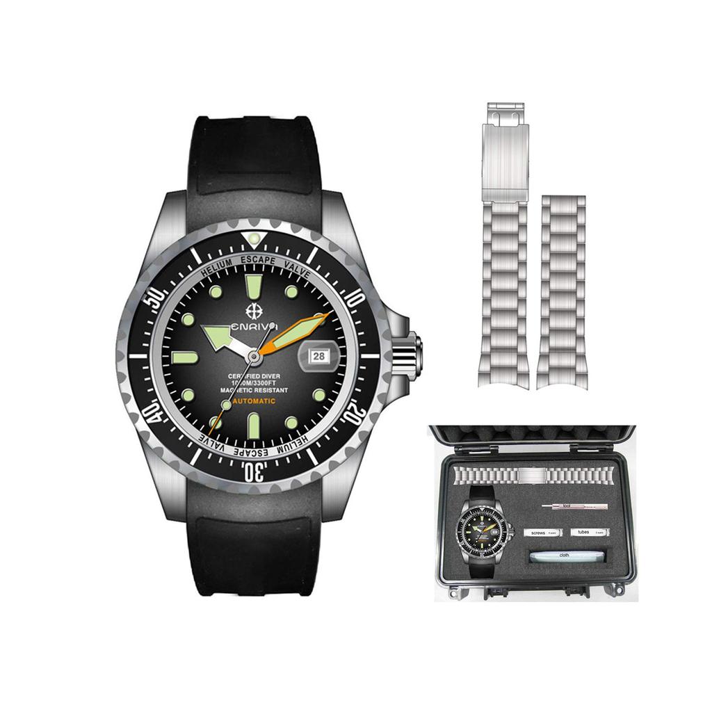 ENRIVA Watch Automatic Watch Date Display 1000m Professional Water Resistant NH35 Sports Diver Style Sapphire Glass Tool Diver's Men's (Black
