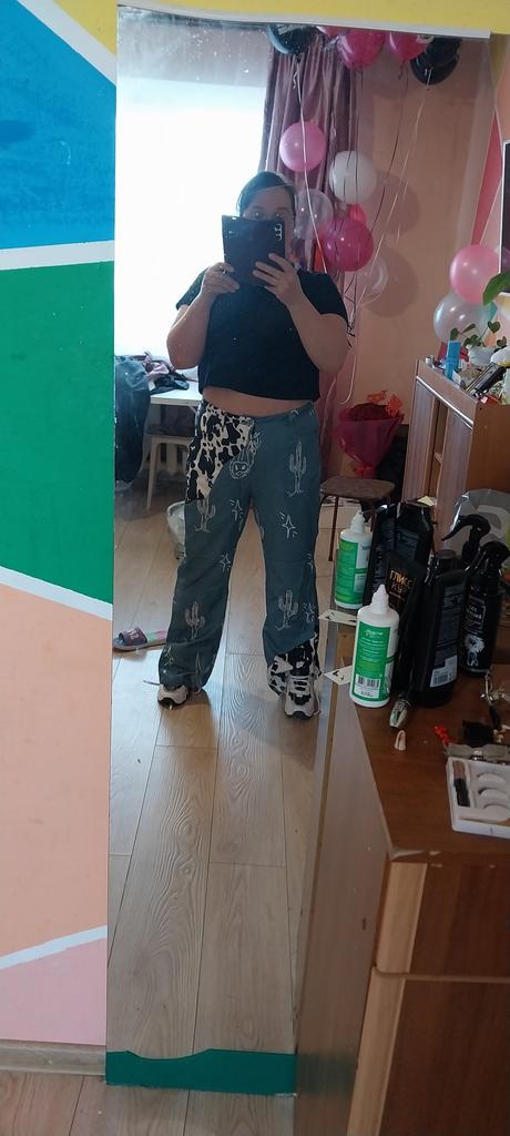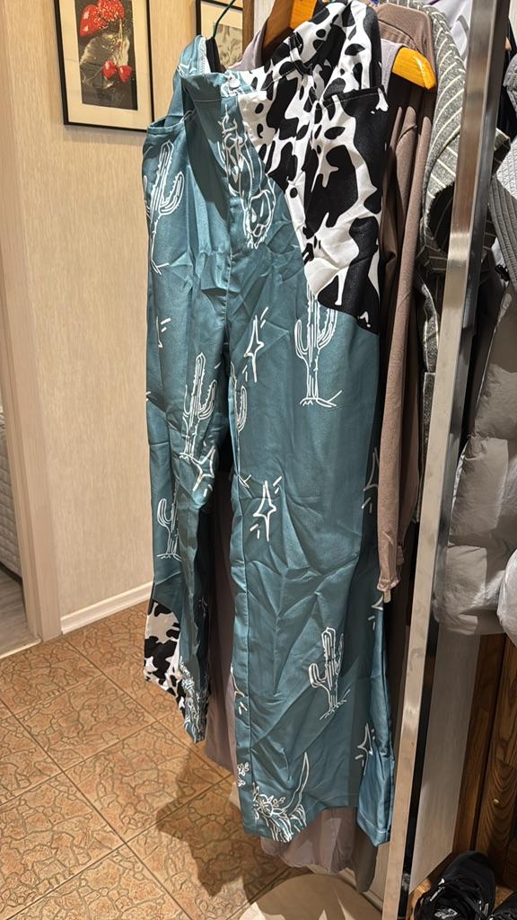 Synthetic bright pants in the 70s style