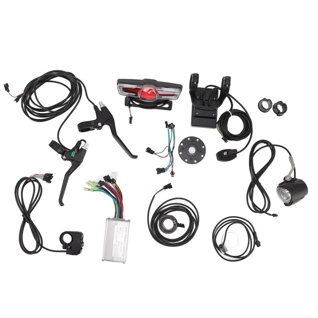 1. Complete Tools: Electric bike conversion kit contain 17A controller, GD06 panel, thumb throttle, power sensor wire, power sensor pad, headlight, taillight, brake lever etc. The kit is suitable for DIY bike.
