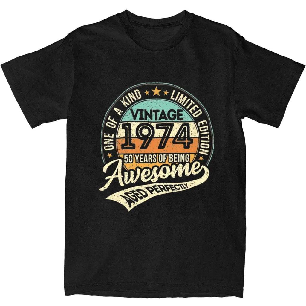 50 Years Old 50th Birthday Gifts Merch Shirt Men Women Vintage 1974 People Novelty Pure Cotton Graphic Print Tee Shirts