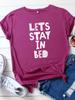 LET'S STAY IN BED Letter Print Women T Shirt Short Sleeve O Neck Loose Women Tshirt Ladies Tee Shirt Tops Camisetas Mujer