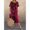 Casual Printed Dress Summer Short-sleeved Waist Round Neck Loose Beach Dress