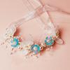 Hand-Woven Pearl Flower Bridal Headband with Golden Leaf Design