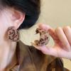 Hong Kong Style Geometric Leopard Print Furry Earrings - Autumn/Winter Trend
