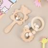 Anti-lost Wooden Baby Rattle Toy Cartoon Bear Wooden Rings Toy Handbell Rattle Toy Kids
