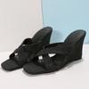 2025 Summer New Square Head Open-toed Denim Cross with Wedge Heel Cool Slippers Women's Fashion High-heeled Sandals