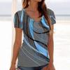 Summer V-neck 3D Printed Top Fashionable Casual Short Sleeved Women's T-shirts