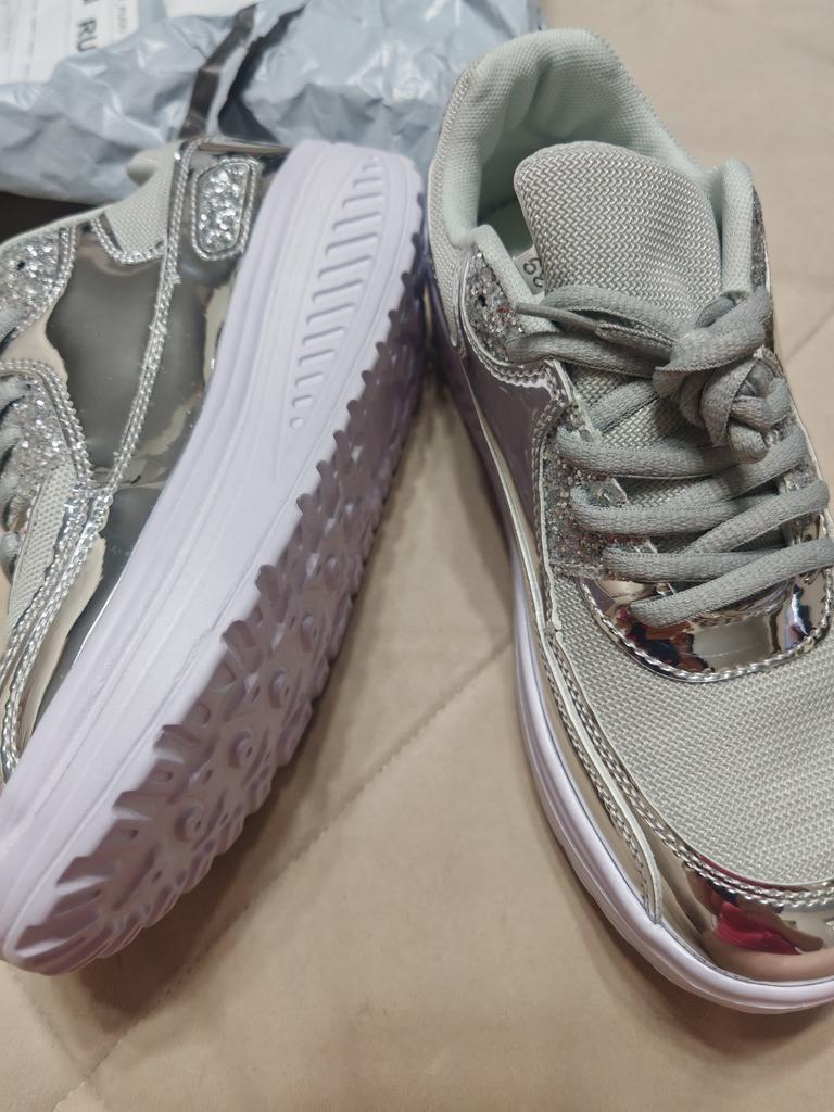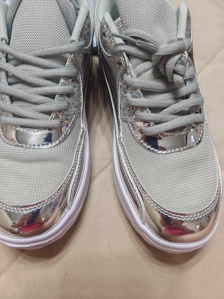 Women's Thick Soled Sports Shoes Breathable Sequins Round Toe Casual Sports Shoes Plus Size Lace Up Shoes