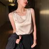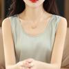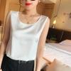 VEZFAA Women's Fashion Solid Color Print Casual Summer Spring Sleeveless U-Neck Blouses & Shirts