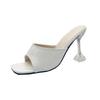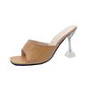 2025 New Fashion Women's Shoes Open-toed Square Head Crystal Heel Thin Heel Large Size Cool Slippers Women