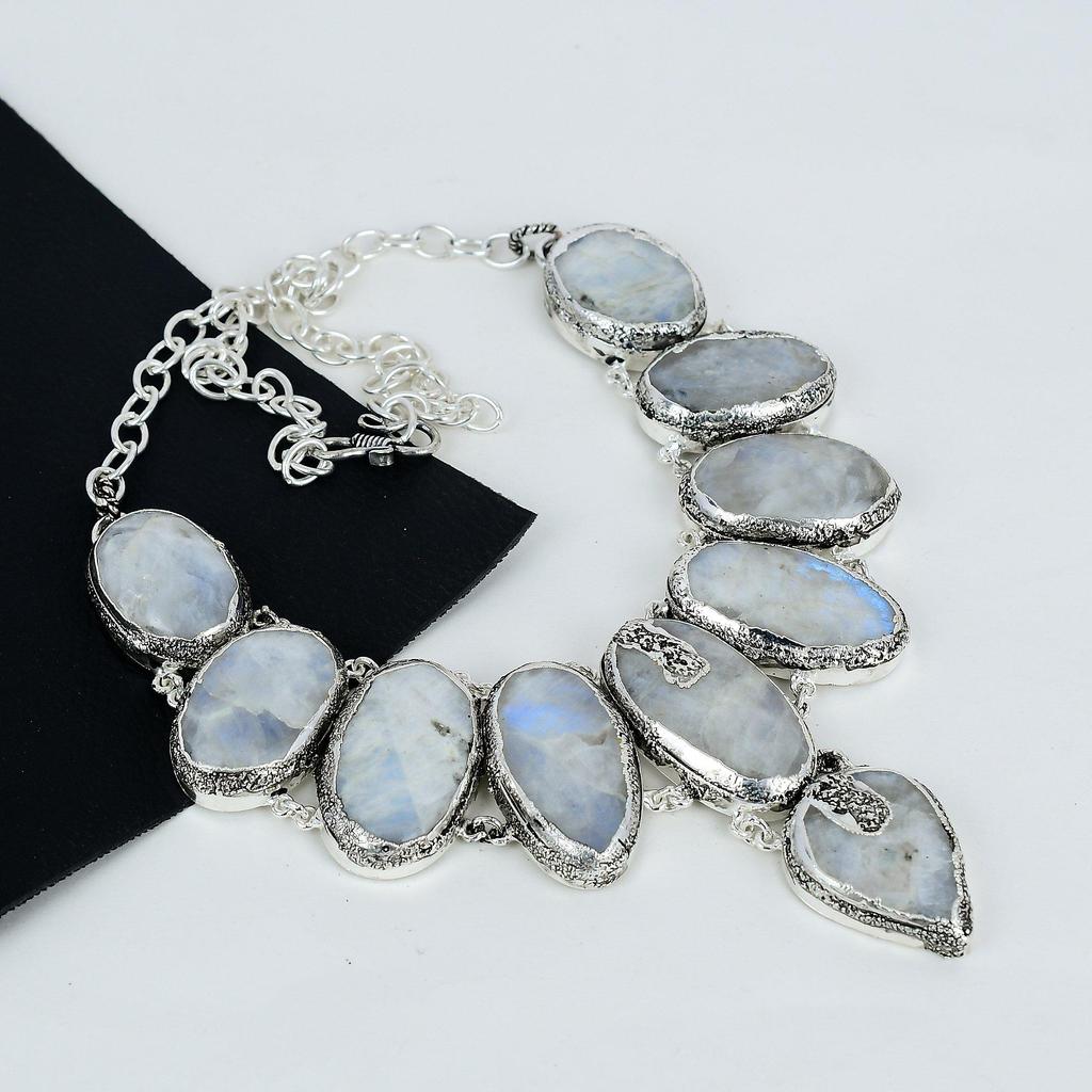 Natural Rainbow Moonstone Gemstone Handmade 925 Sterling Silver Electroform Necklace, Moonstone Silver For Wife Unisex Necklace Love Gifts