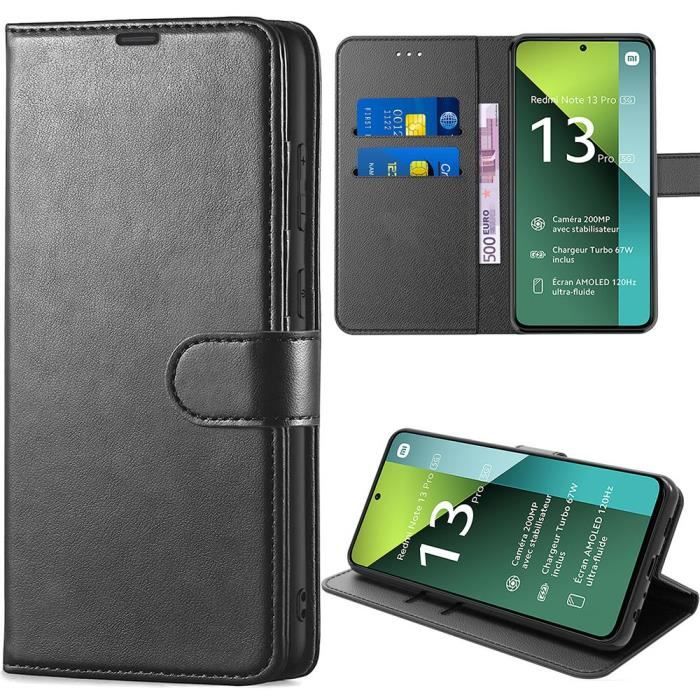 Coque pour Xiaomi Redmi Note 13 Pro 5G - E.F.Connection - Antichoc - Simili Cuir - Fonction Support - Noir