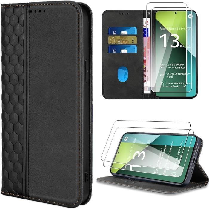 Coque pour Xiaomi Redmi Note 13 Pro 5G - Noir - Cuir PU - TPU - Poche à Carte - Motif Mosaïque