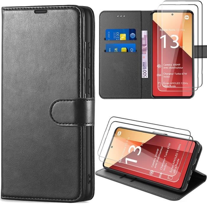 Coque - E.F.Connection - pour Xiaomi Redmi Note 13 Pro 4G - Antichoc - Effet Cuir - 2 Verres Trempés