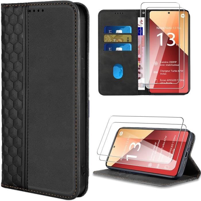 Coque - E.F.CONNECTION - Pour Xiaomi Redmi Note 13 Pro 4G - Protection Effet Cuir - 2 Verres Trempés - Élégant