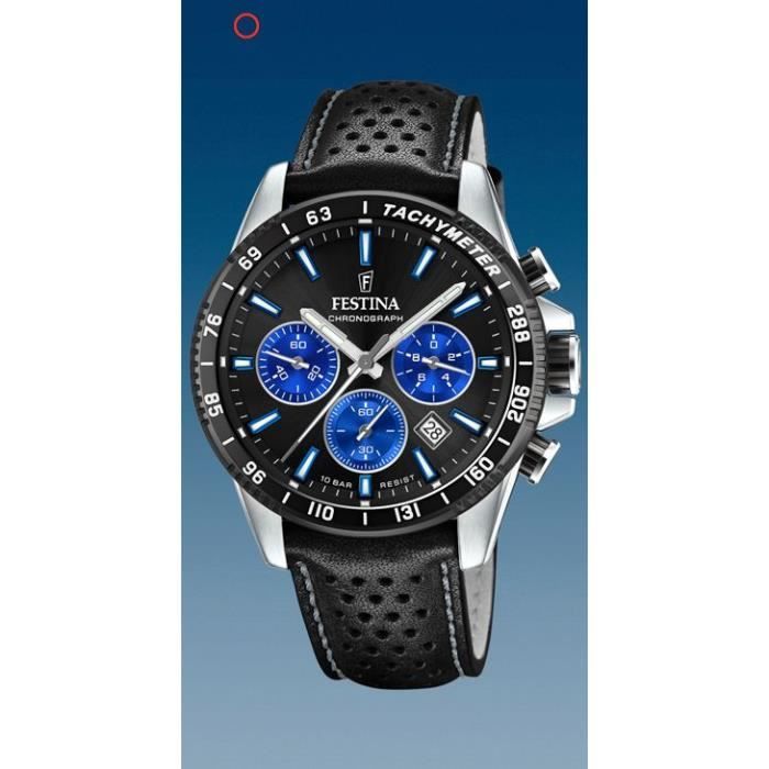 Montre - Festina - F20561/6 - Cuir bleu - Cadran noir et bleu - Étanche 100M