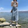 2024 High-Waist Split Denim Skirt: Women's Medium-Length A-Line for Spring, Summer, and Autumn